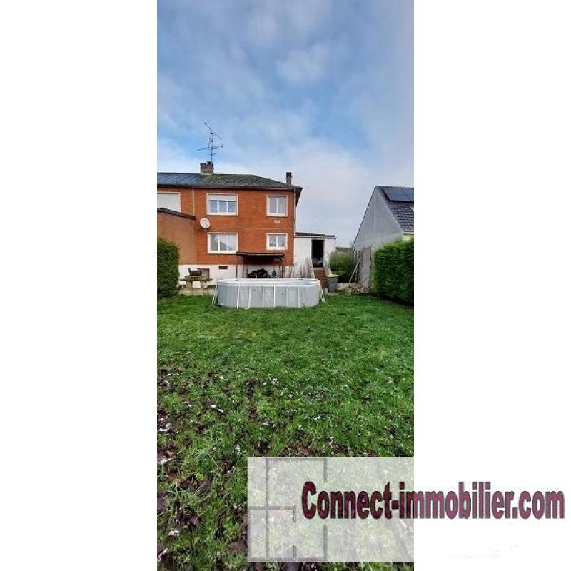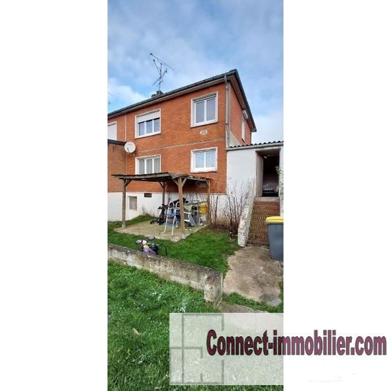 maison de ville à Cambrai, place de Houma , 80m² habitables + 16m² de garage et sous sol total , bâtie sur 567 m² . Au rez de chaussée : cuisine , wc , séjour , garage attenant, à l étage : palier, 3 chambres et salle de bain . la maison est raccordée au tout à l égout.